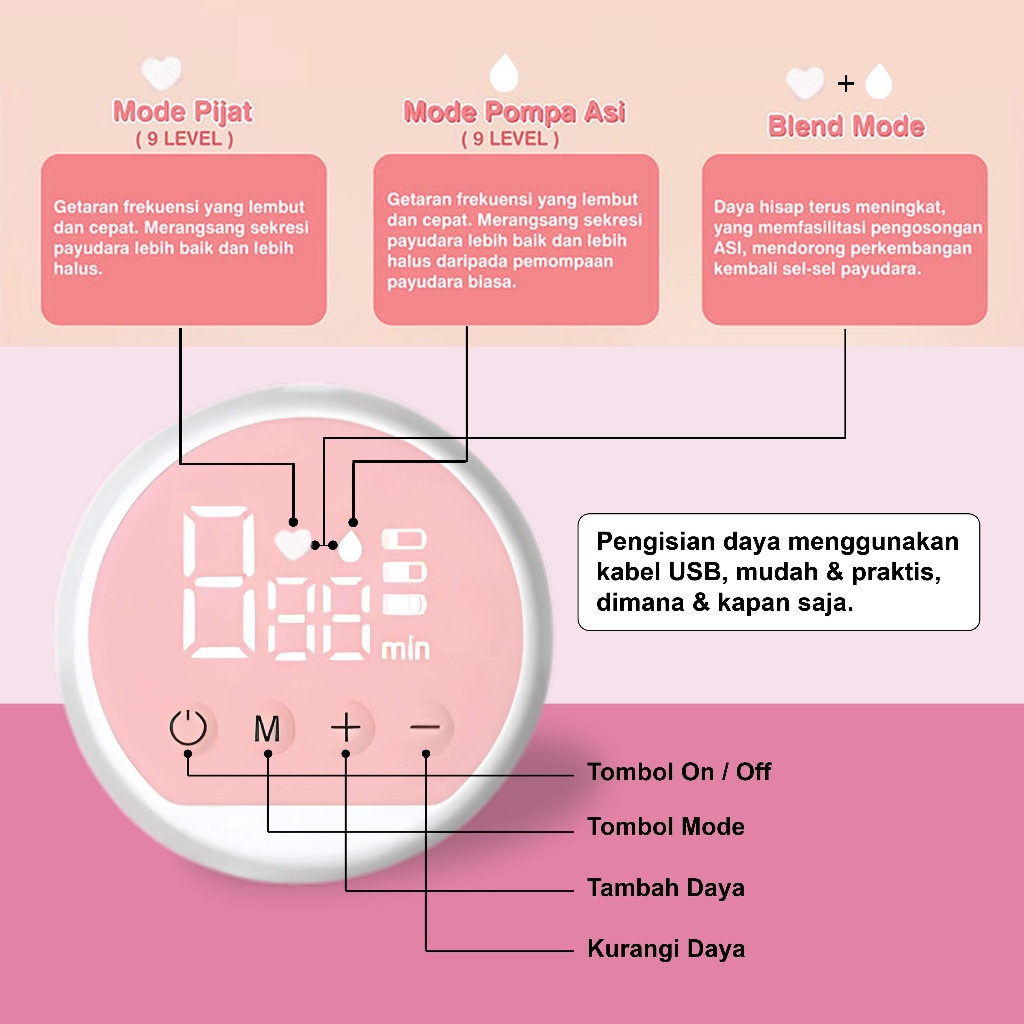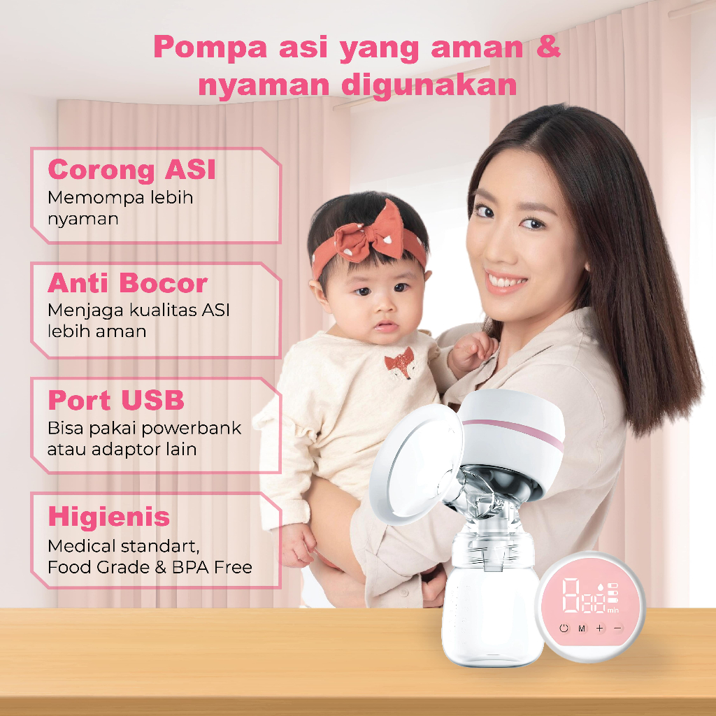 Pompa ASI Electric Wireless Portable Tanpa Rasa Sakit Painless Rechargeable Single Pamping ASI Elektrik Breast Pump Daya Hisap Kuat BPA Free