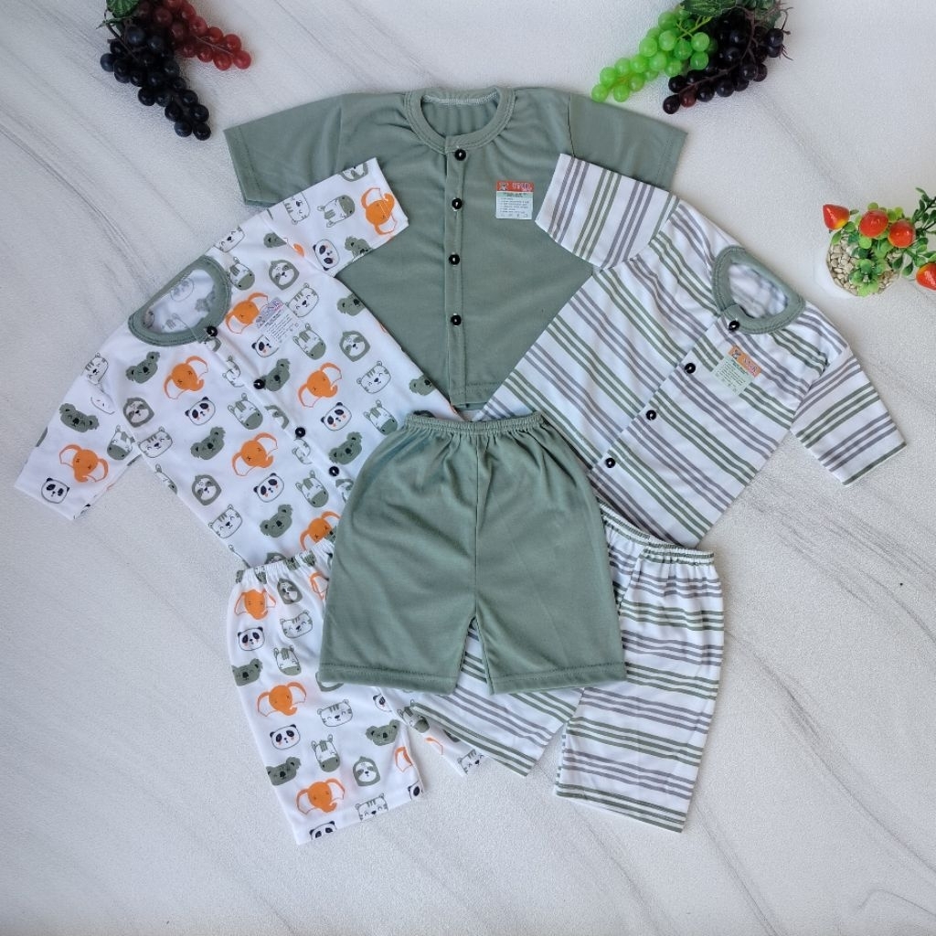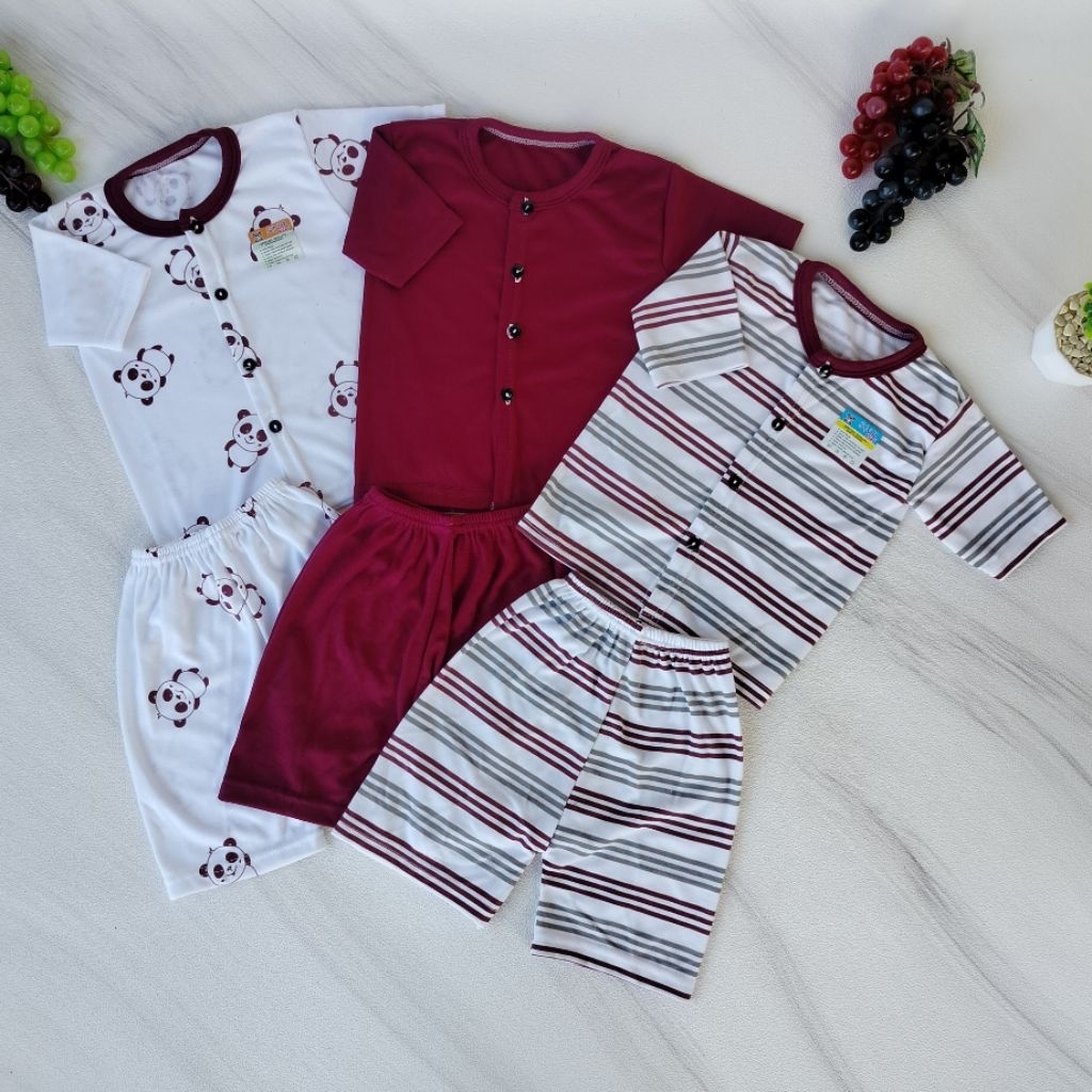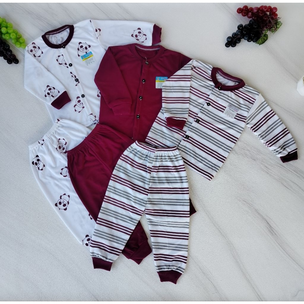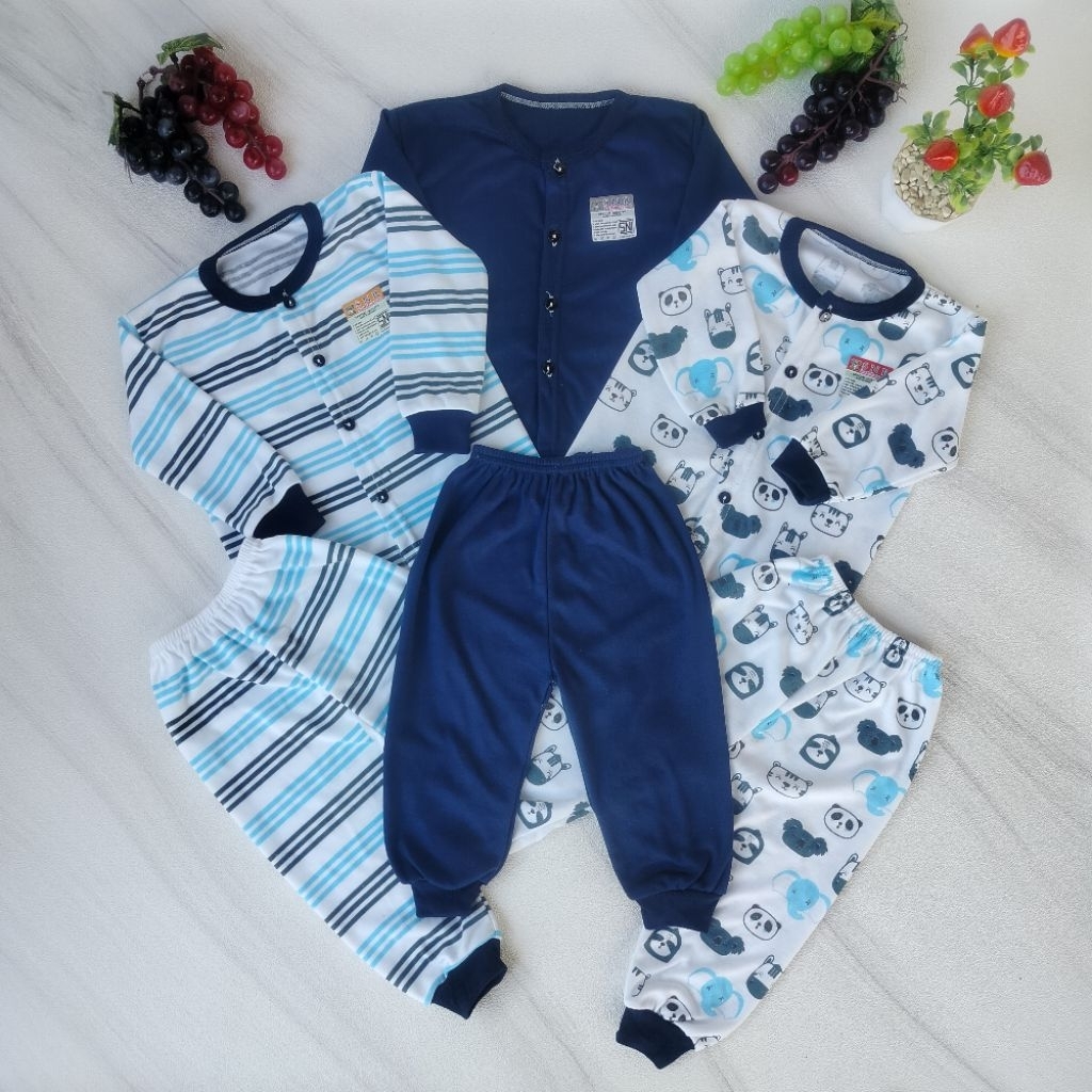 3setel Setelan Baju&Celana Bayi Kancing Depan Usia 6-18bulan