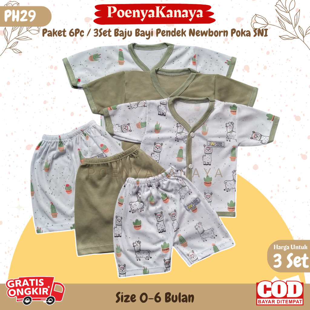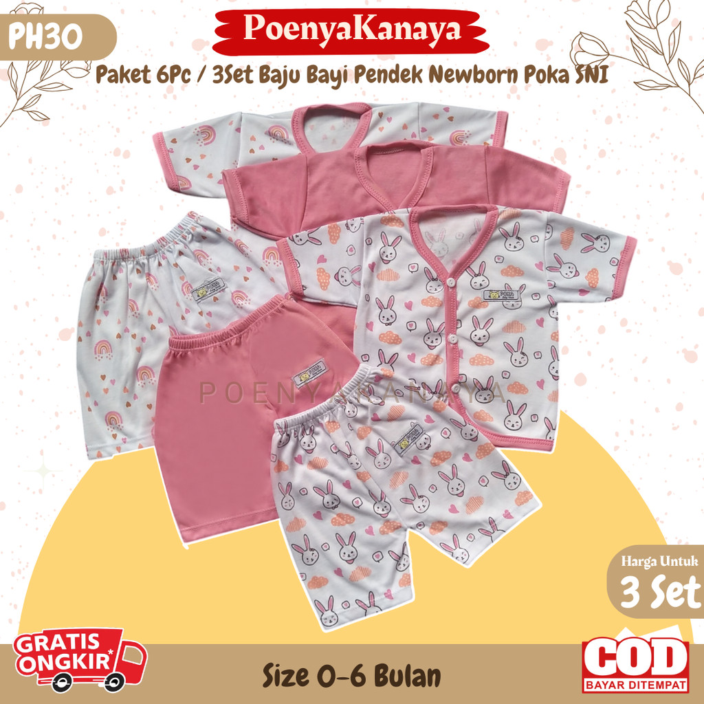 Paket 6Pc/ 3Set Setelan Baju Bayi Celana Bayi PENDEK Newborn Serian Pink Poka SNI PH30
