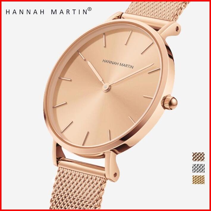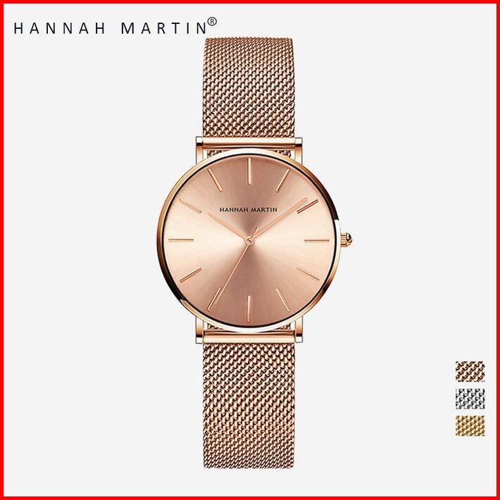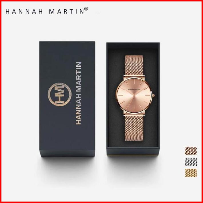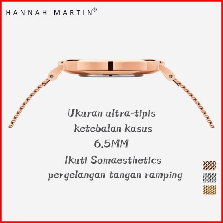 Hannah Martin Jam Tangan Wanita 100 Original Tahan Air Cewek Quartz Stainless Steel Mesh Analog Women Watch Arloji Cc36