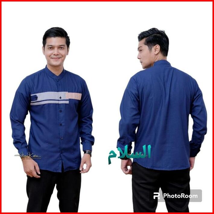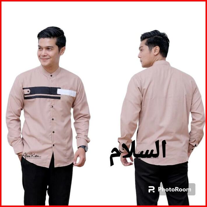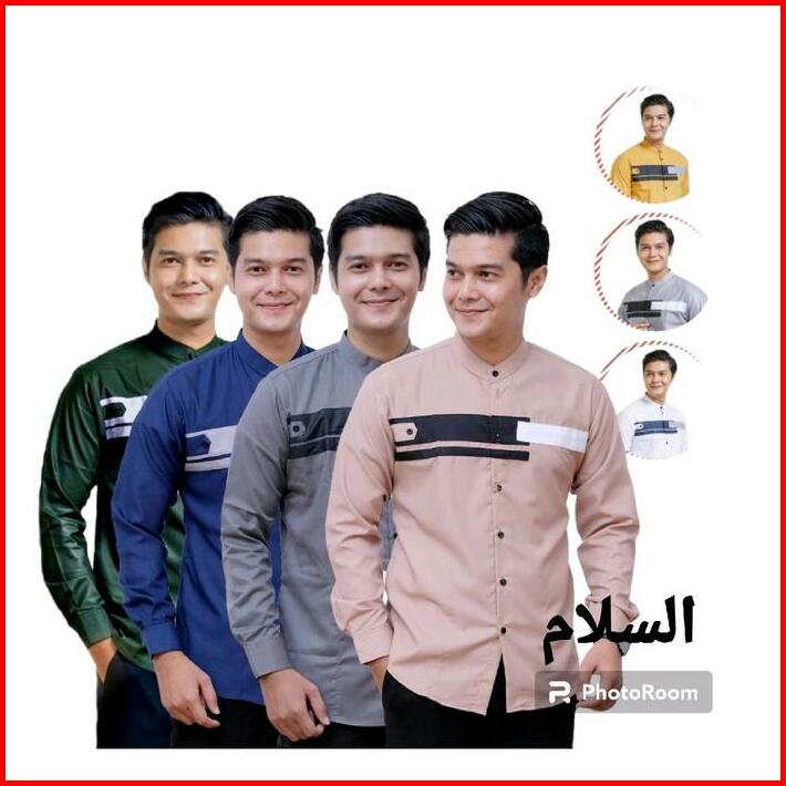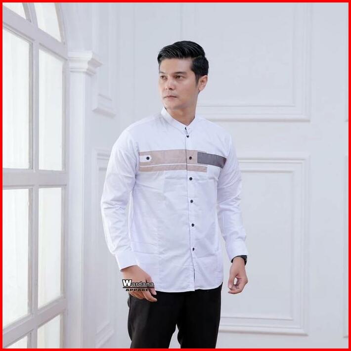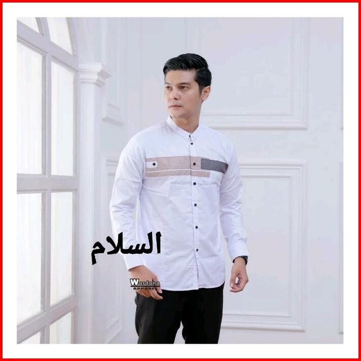 Baju Koko Kurta Hadroh Lengan Panjang Motif Yordan Kemko Muslim Pria Terbaru Putih Katun Dewasa As Salam