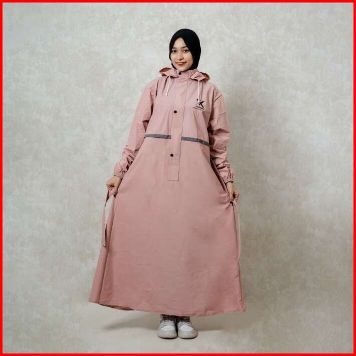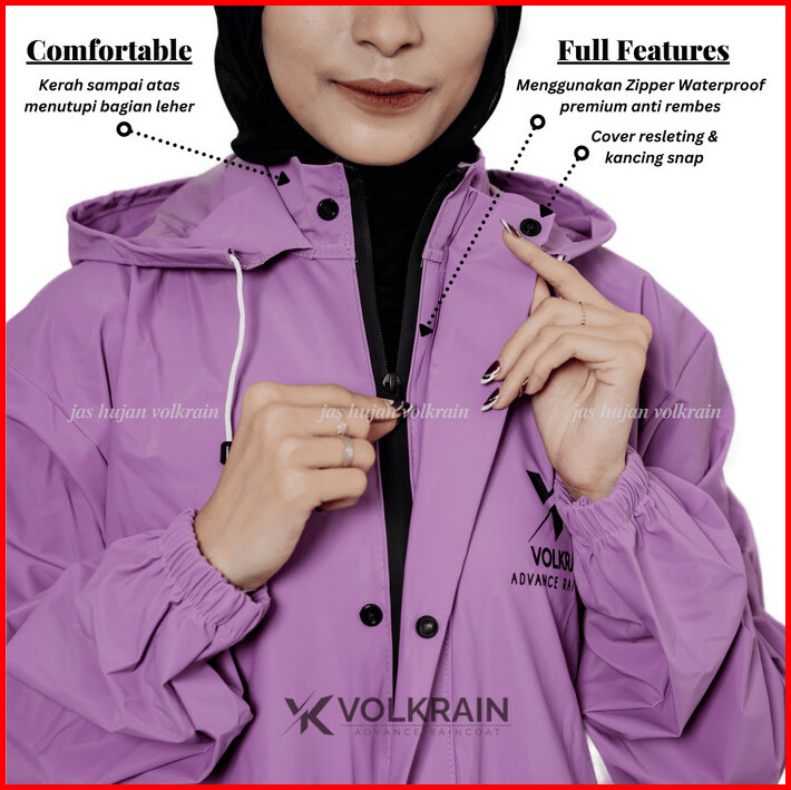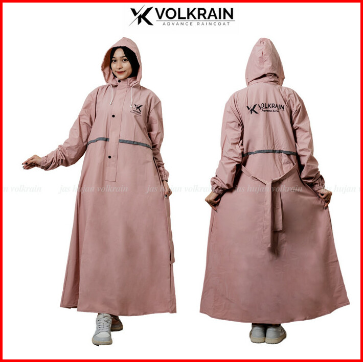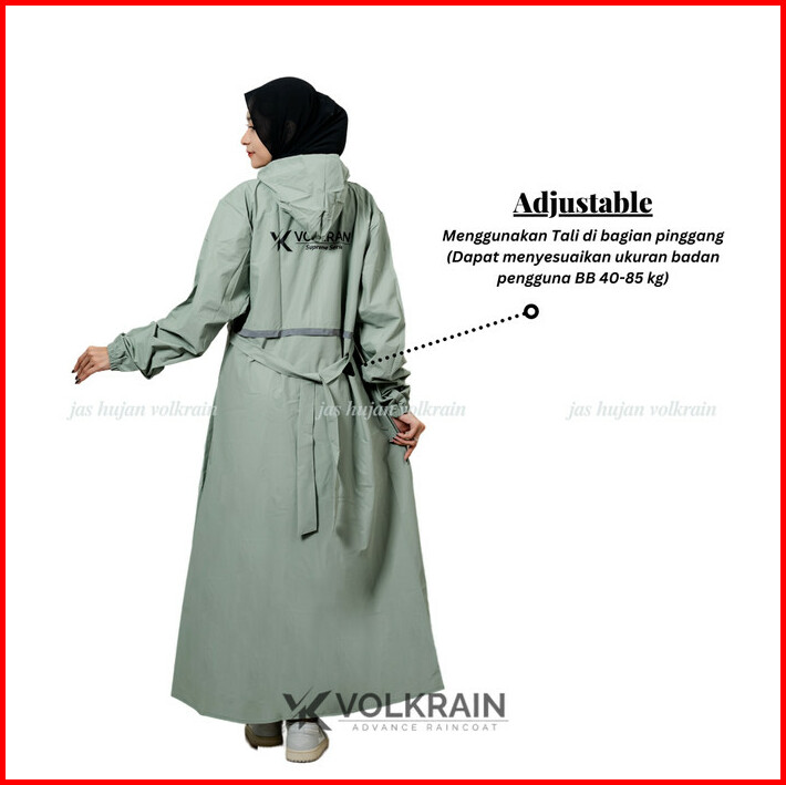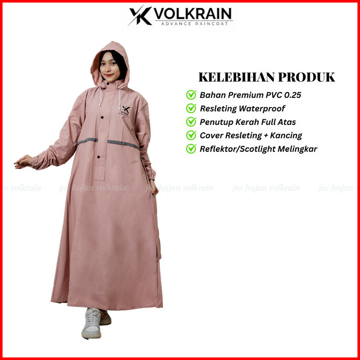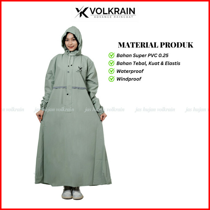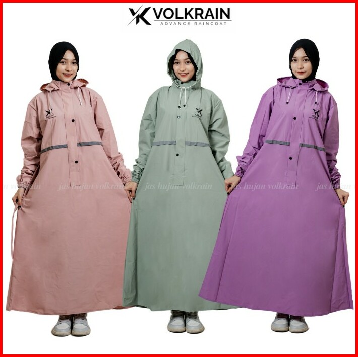 Jas Hujan Muslimah Mantel Gamis Volkrain Resleting Waterproof Pvc 0.25 Super Premium