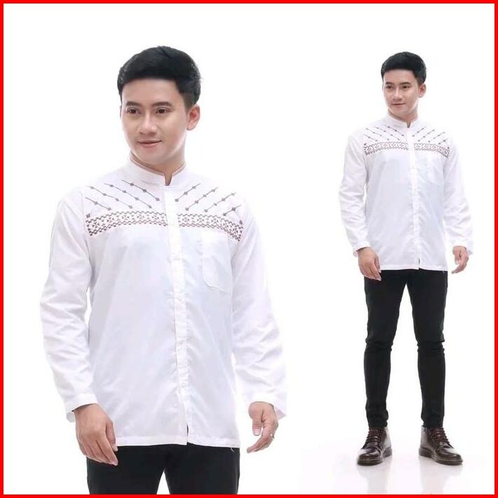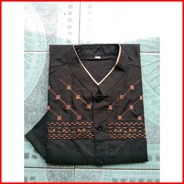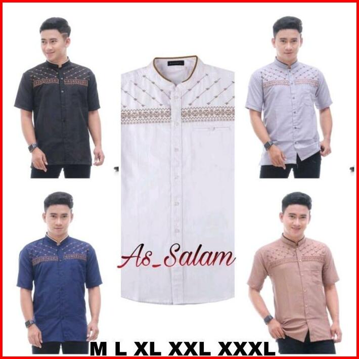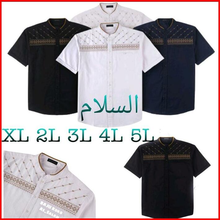 Big Size Jumbo Baju Koko Bordir Pria Dewasa Lengan Pendek Katun Muslim Motif Bordir