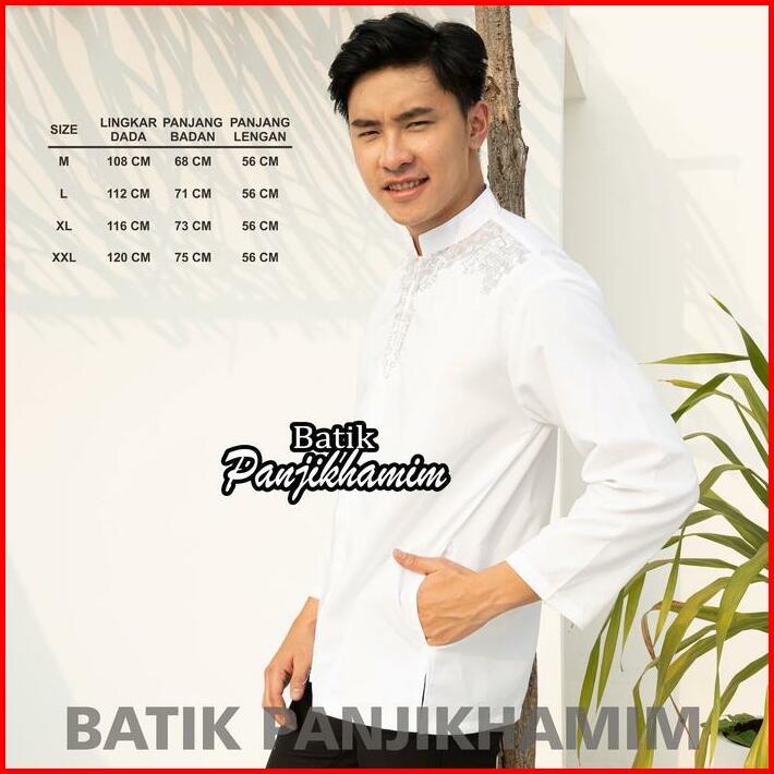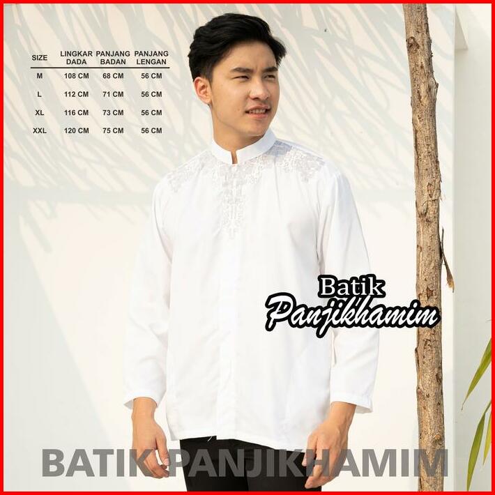 Kemeja Koko Lengan Panjang Putih Bordir Baju Atasan Muslim Pria Dewasa Katun Kancing Kombinasi