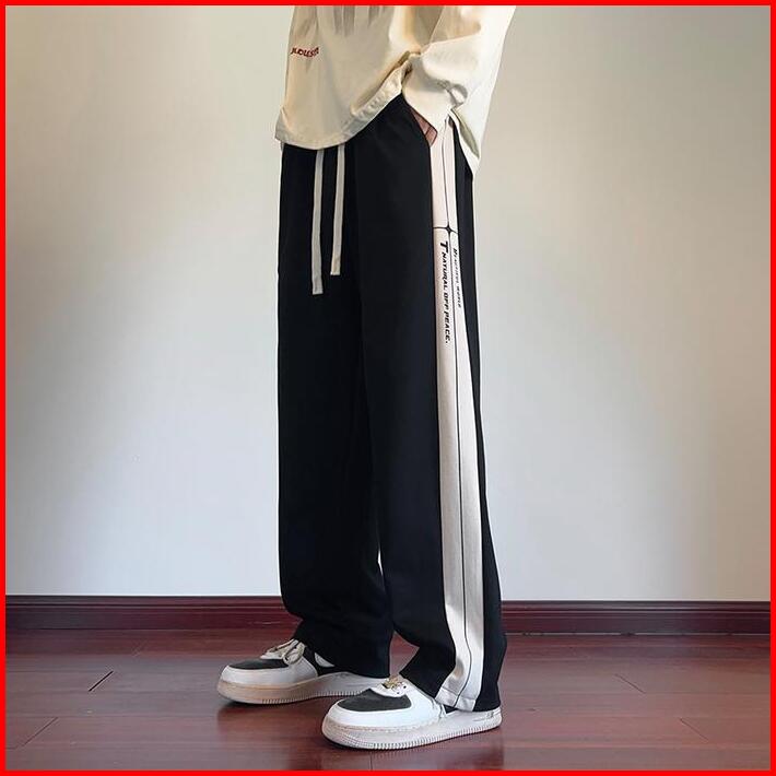 Celana Panjang Unisex Celana Kasual Lurus Berkaki Lebar Longgar Keren Ringan Bernapas Pants