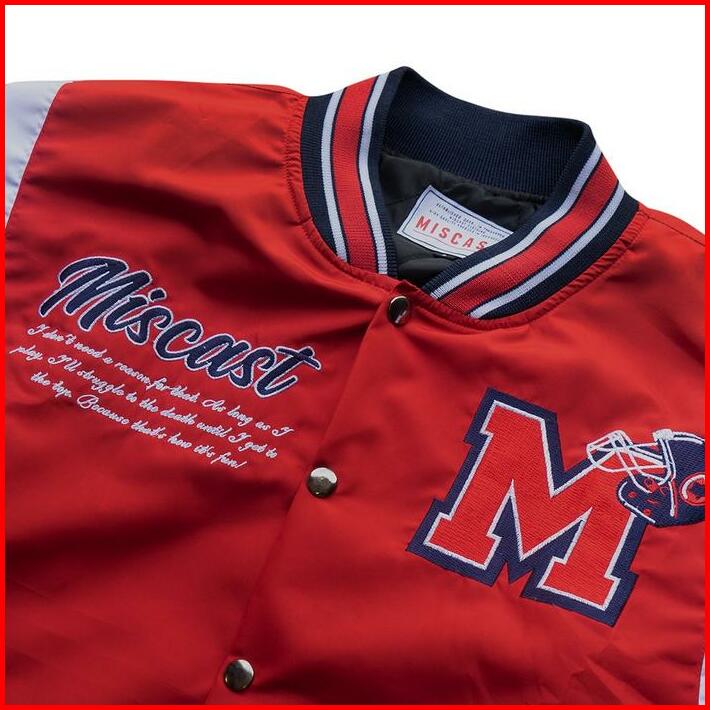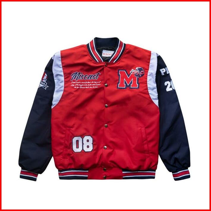 Miscast Varsity Jaket Vintage Eternal Red Retro Motor Cougle Collar Pria Boxy Bomber Carhartt Anak Basis Stm Baseball Bo