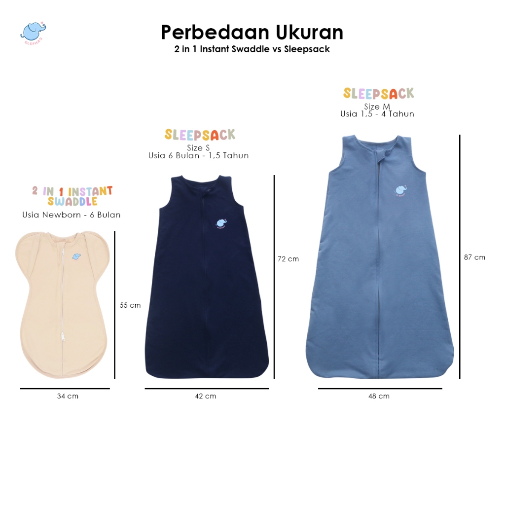 Elephas 2 in 1 Instant Swaddle - Bedong Bayi Newborn Instant 2in1 Aman untuk Bayi Baru Lahir Bedong Instant Nyaman dengan Material Bahan Premium Soft Baby Terry