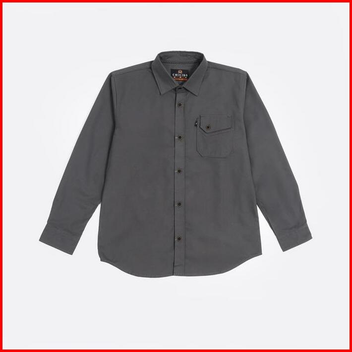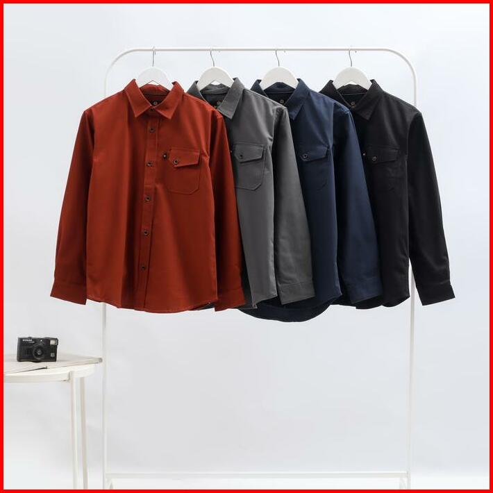Kemeja Kasual Polos Pria Lengan Panjang Matt Katun