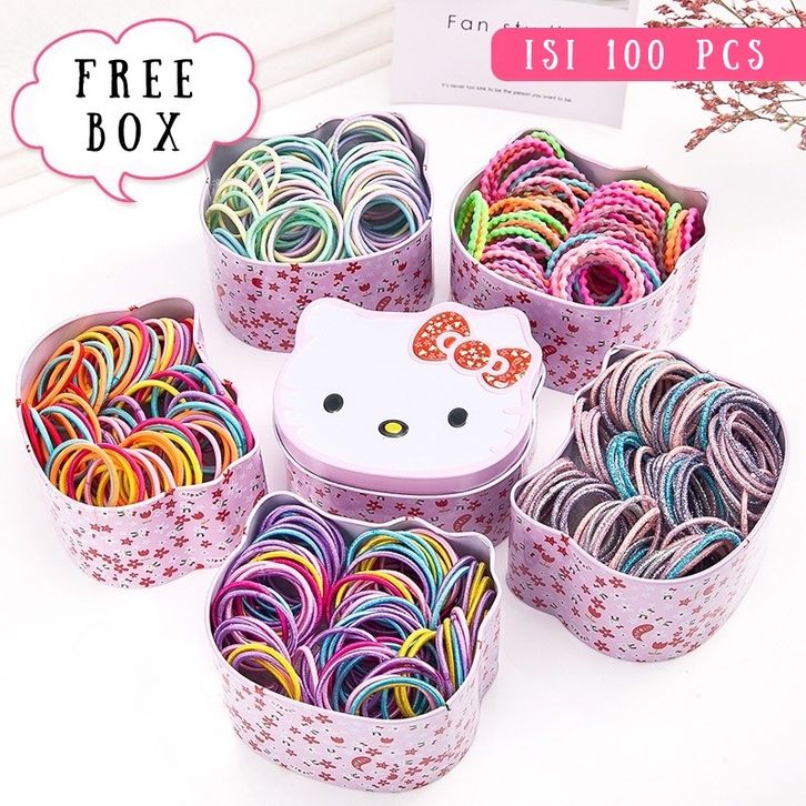 FY Ikat Rambut Anak, Free Kaleng Kartun Kucing Lucu Aksesoris Karet Rambut Anak