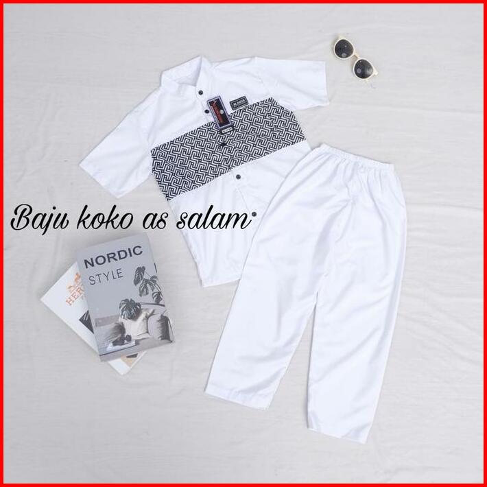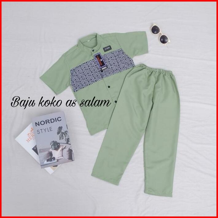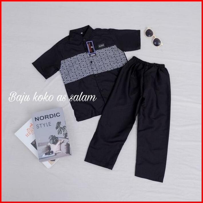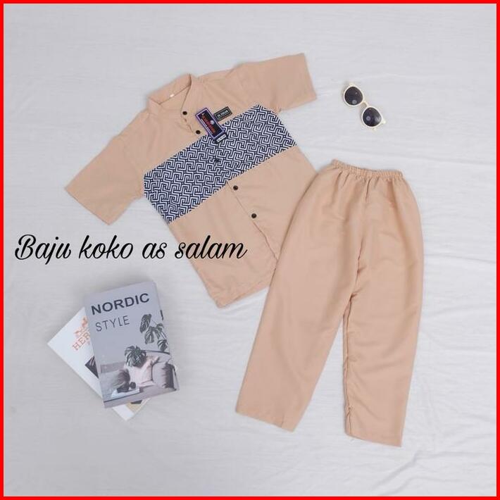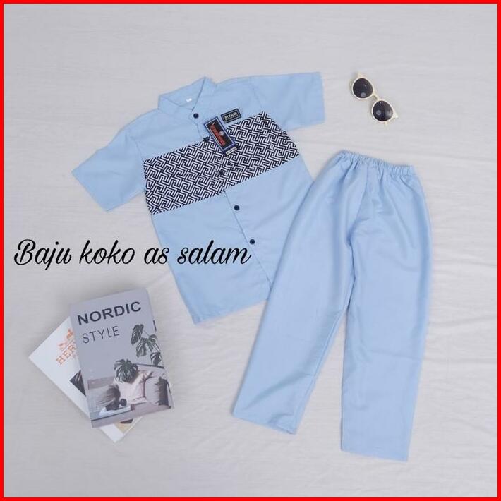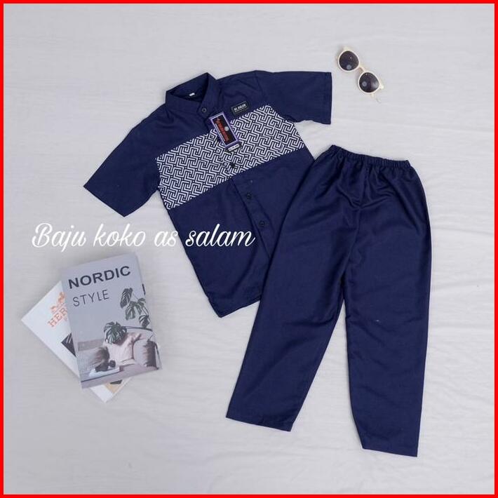 Setelan Baju Koko Kurta Anak Laki-laki Usia 4-11 Th Lengan Pendek Motif Batik Kain Katun