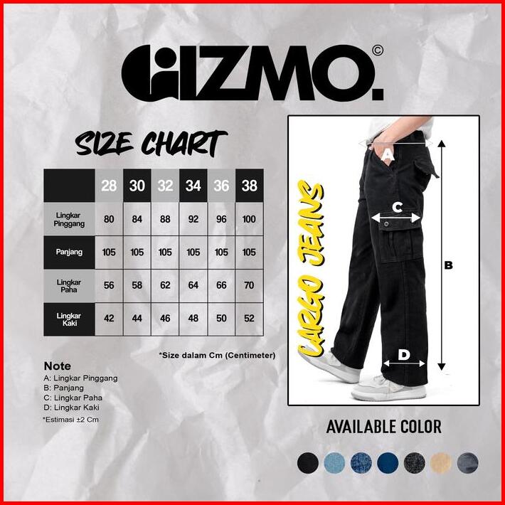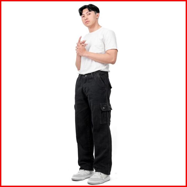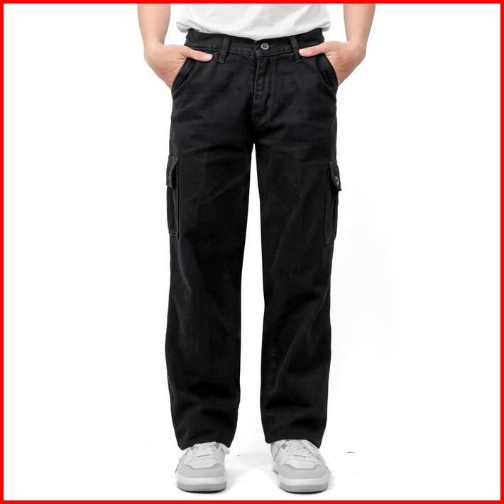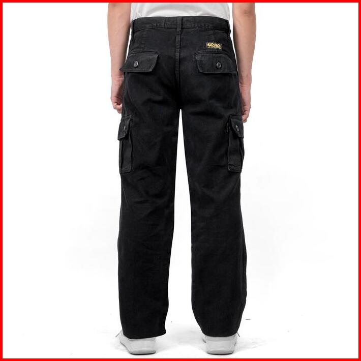 Gizmo Celana Cargo Jeans Pria Loose Fit Reguler Gombrong Long Cargo Pants Hitam Keren Nyaman Panjang