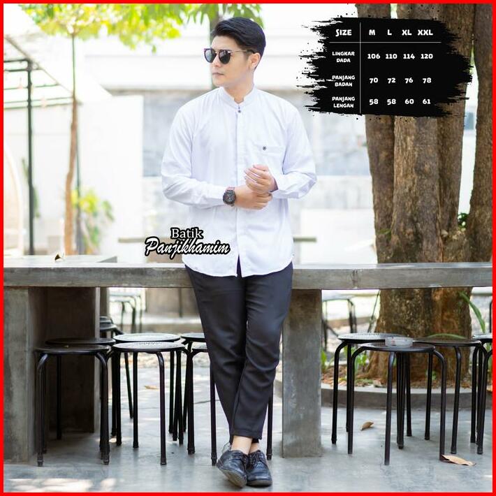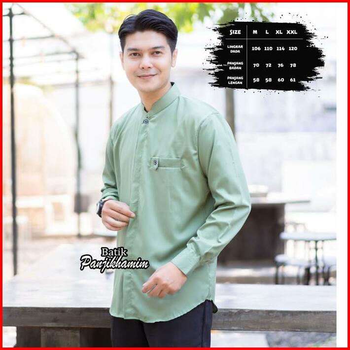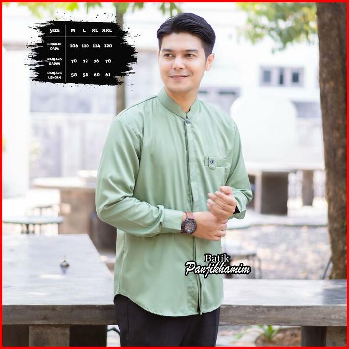 Baju Koko Pria Dewasa Lengan Panjang Polos Warna Hijau Sage Putih Abu Muda Bahan Katun Toyobo Slimfit Jumbo Xxl