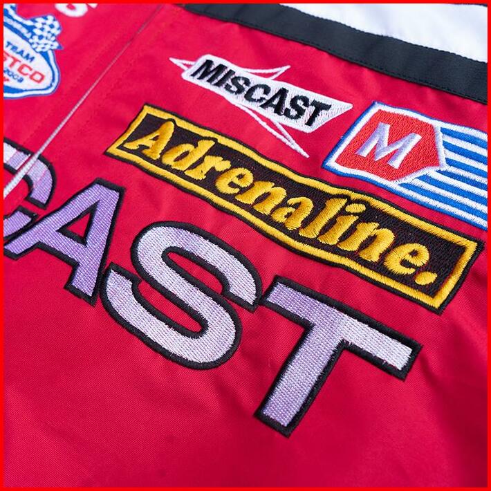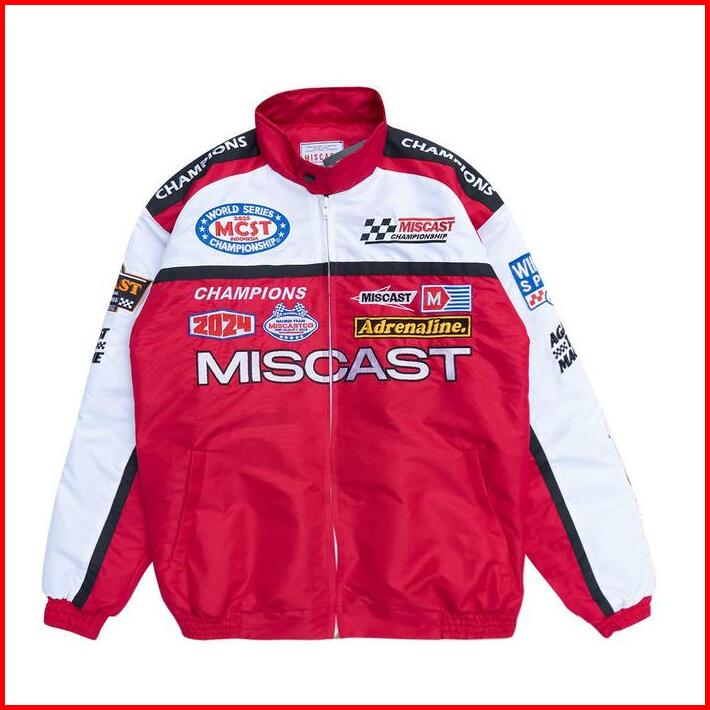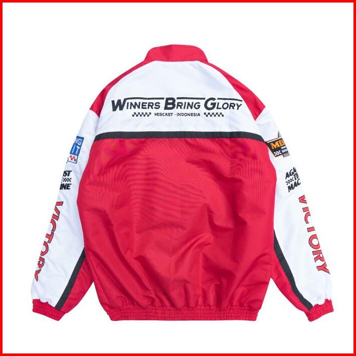 Miscast Nascar Jaket Vintage Forza Red Waterproof Varsity Jacket Outfits Jaket Parka Pria Distro Motor Boxy Collar Murah
