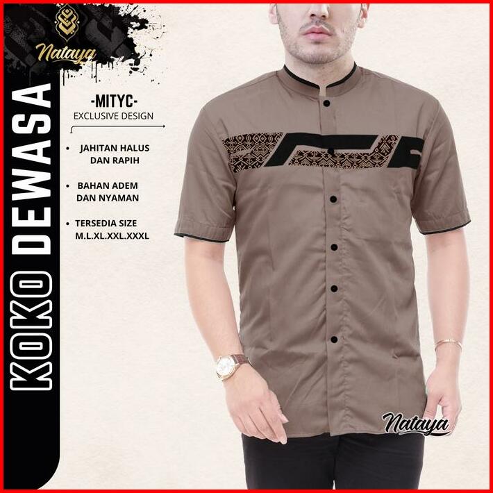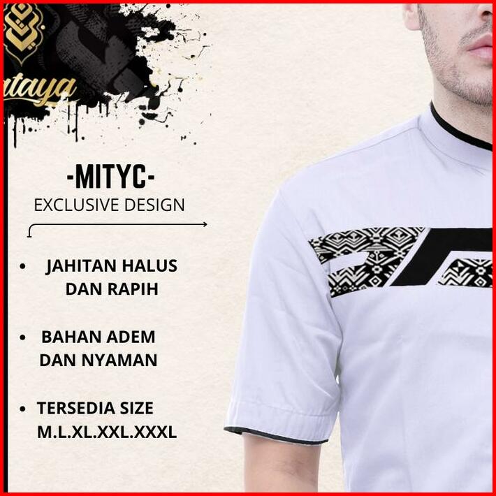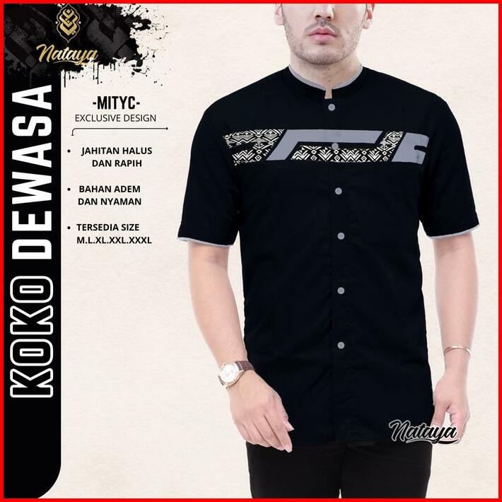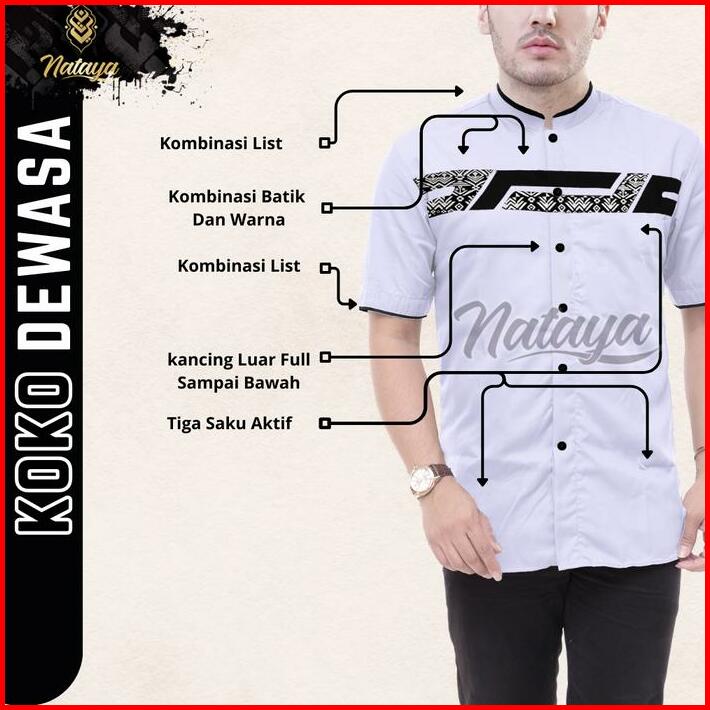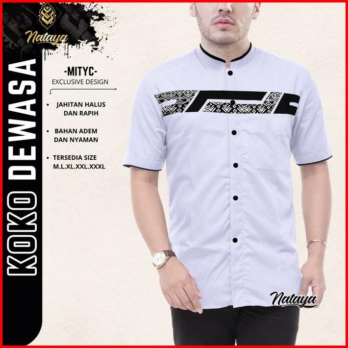 Baju Kemeja Koko Laki Laki Lengan Pendek Motif Kombinasi Batik M L Xl Xxl Putih Hitam