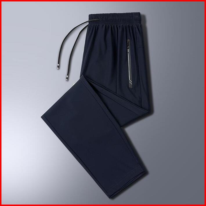 Celana Pria Saku Ritsleting Celana Cepat Kering Panjang Ice Silk Fabric Keren Ringan Bernapas Elastisitas Pants K301a