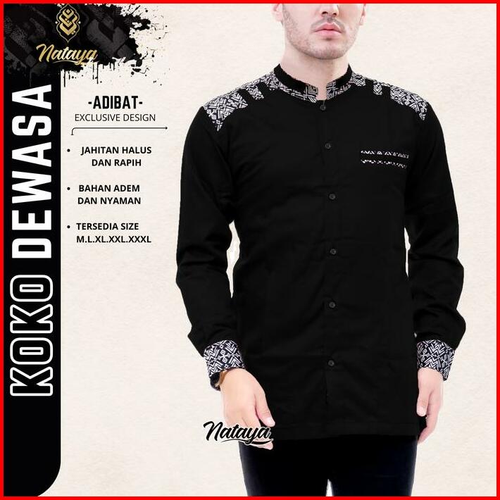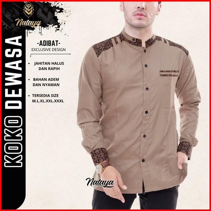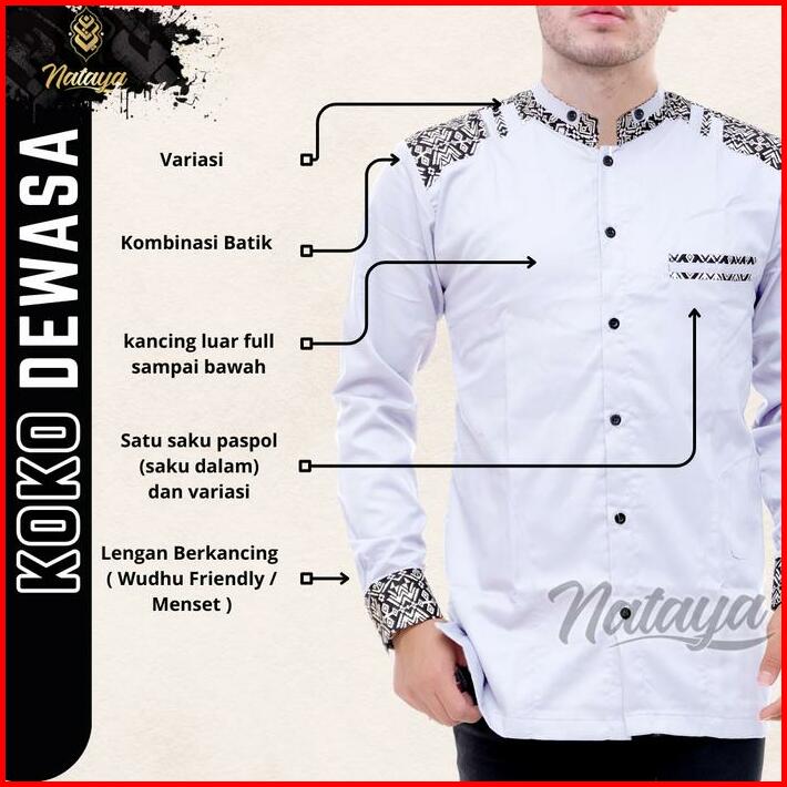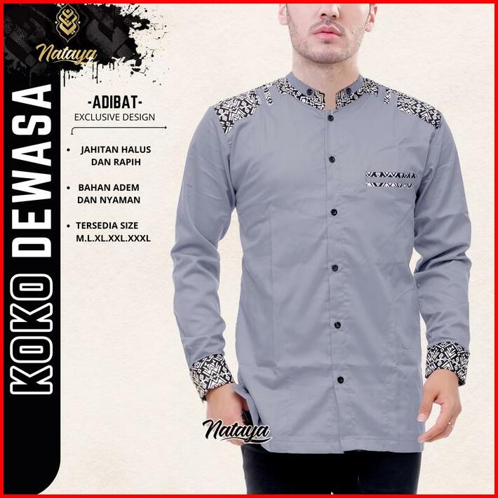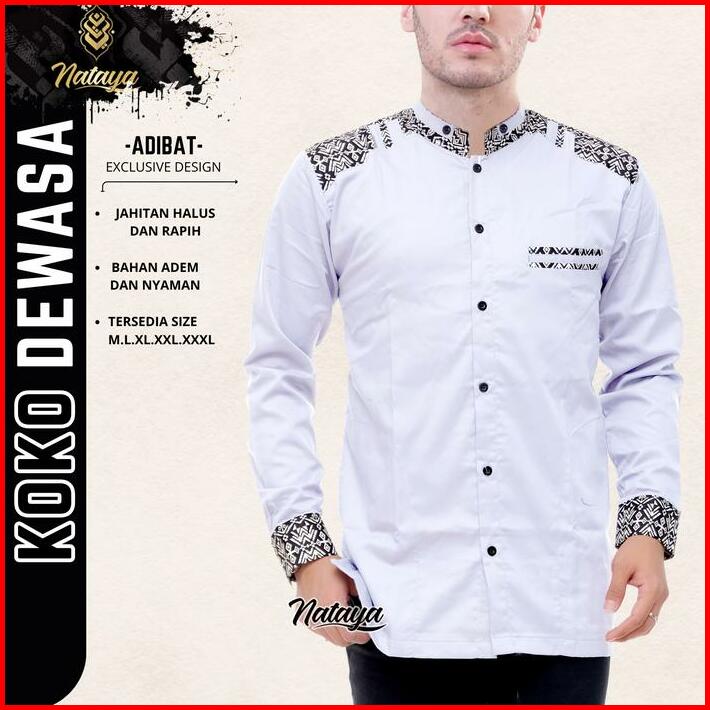 Baju Koko Baju Atasan Muslim Pria Lengan Panjang Motif Kombinasi Batik Terlaris Warna Putih Coksu Abu Hitam Kurta Dewasa