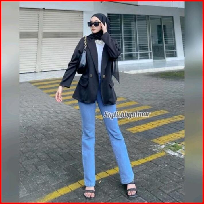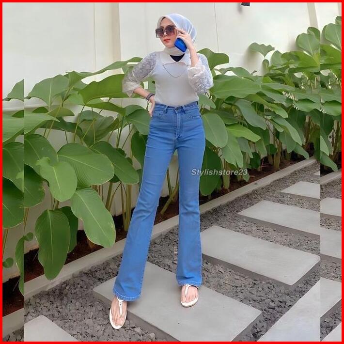 Celana Jeans Highwaist Cutbray Wanita Cewek Bahan Melar Panjang Berkualitas High Wasit Jeans Stres H Wanita Cutbray Kore