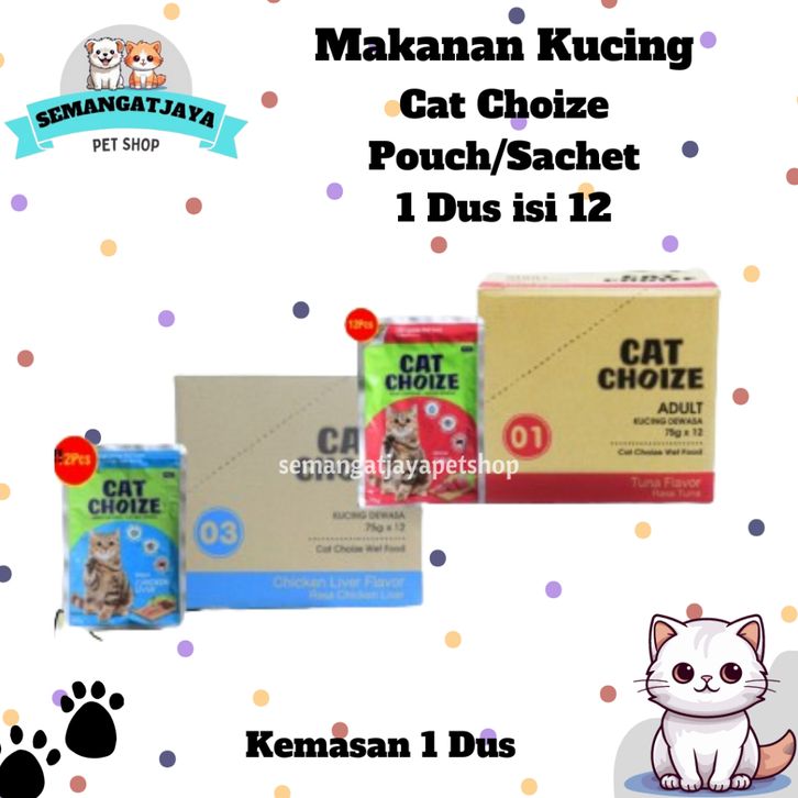 Makanan Kucing Penggemuk Makanan Basah Kucing Sachet Cat Choize Pouch Wet Food 1 Dus 12PCS