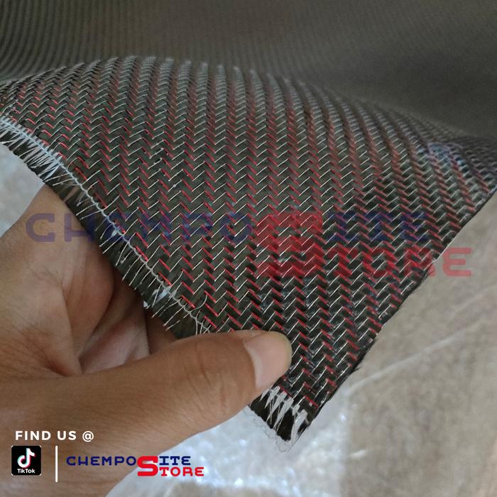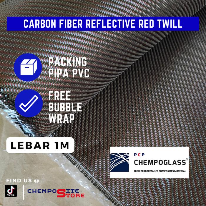 serat carbon fiber red reflective metalic TWILL 200Gsm L 1m