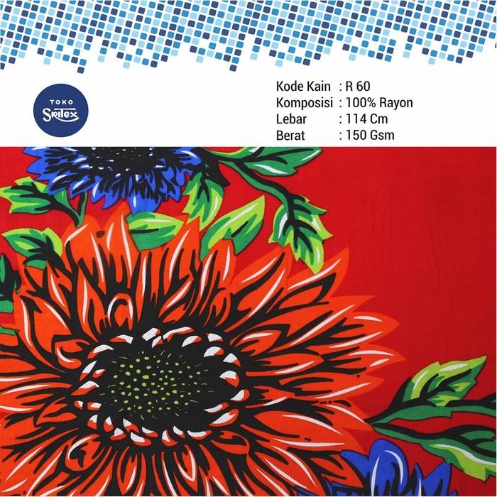 Toko Sritex Kain Rayon Print Bunga Seruni Premium R60 (Per 45cm)