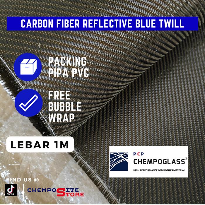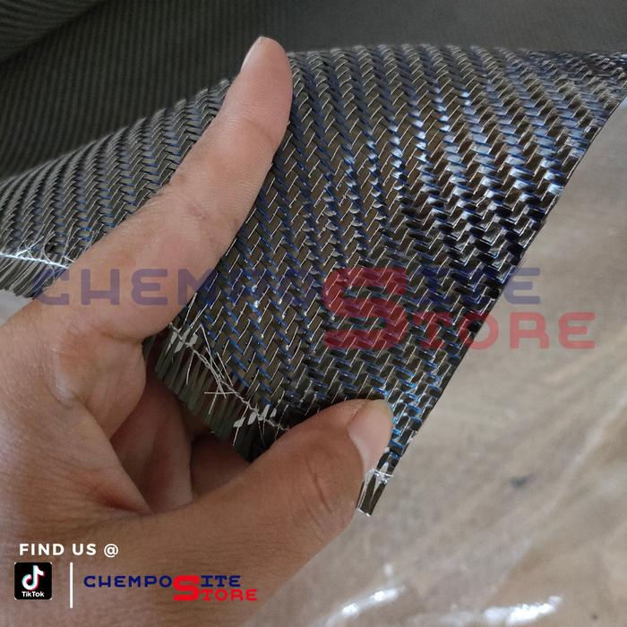 serat carbon fiber blue reflective metalic TWILL 200Gsm L 1m