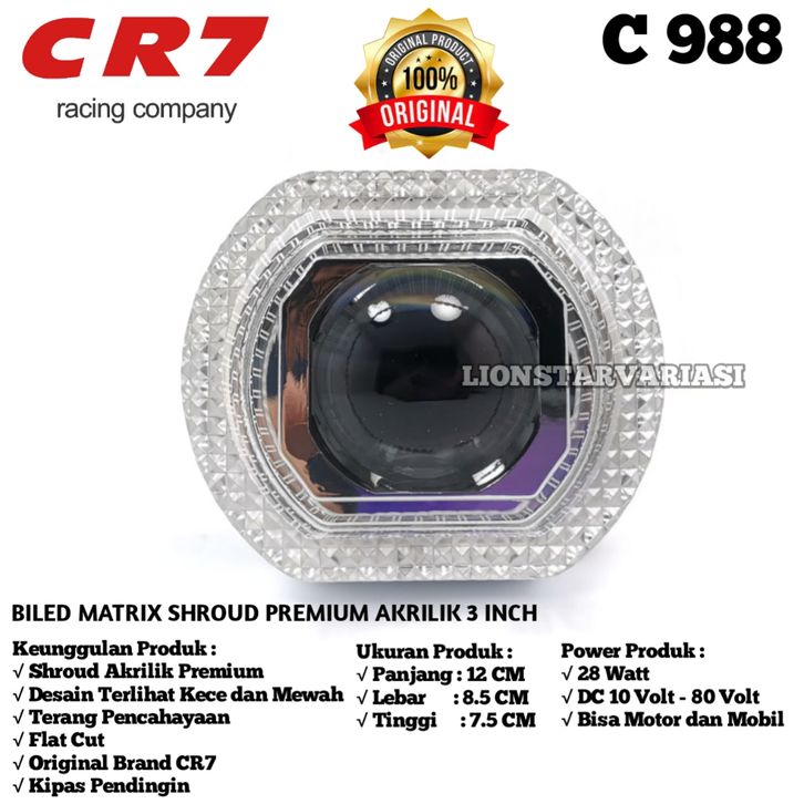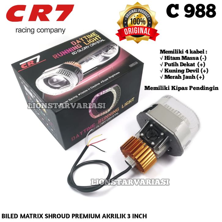 CR C988 - Biled Projector Matrix 3 Inch Plus Kipas Shroud Akrilik LED High Low Flat Cut Motor Mobil