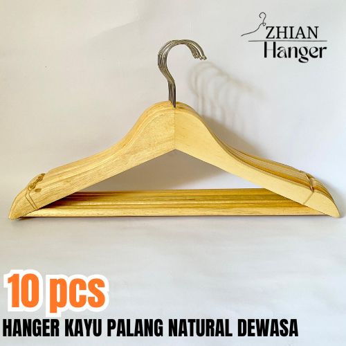 PREMIUM 10PCS Hanger Kayu Palang Dewasa Natural Super Premium ecoss