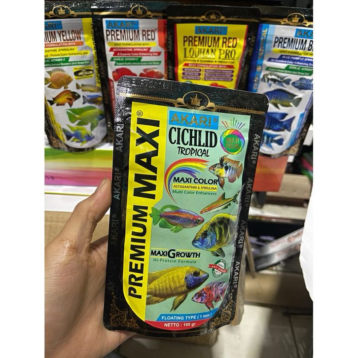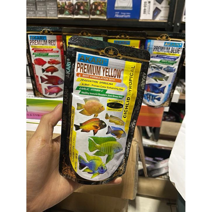 PELET AKARI PREMIUM MAXI BLUE YELLOW RED LOUHAN PRO CHICHLID 100g 100 gram pakan ikan hias predator