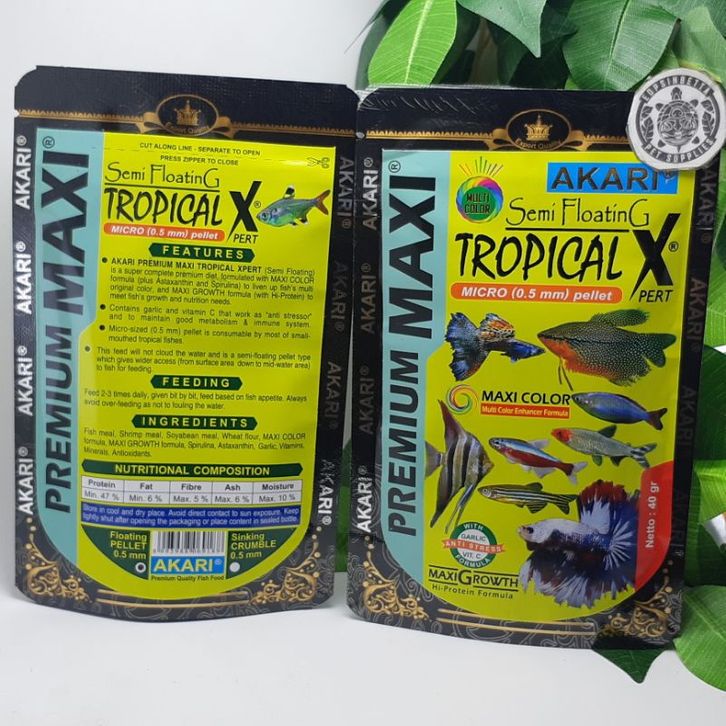 Akari Tropical Xpert 40 gr Premium Maxi / Red / Blue / Yellow Pellet 0.5 mm Semi Floating Makanan