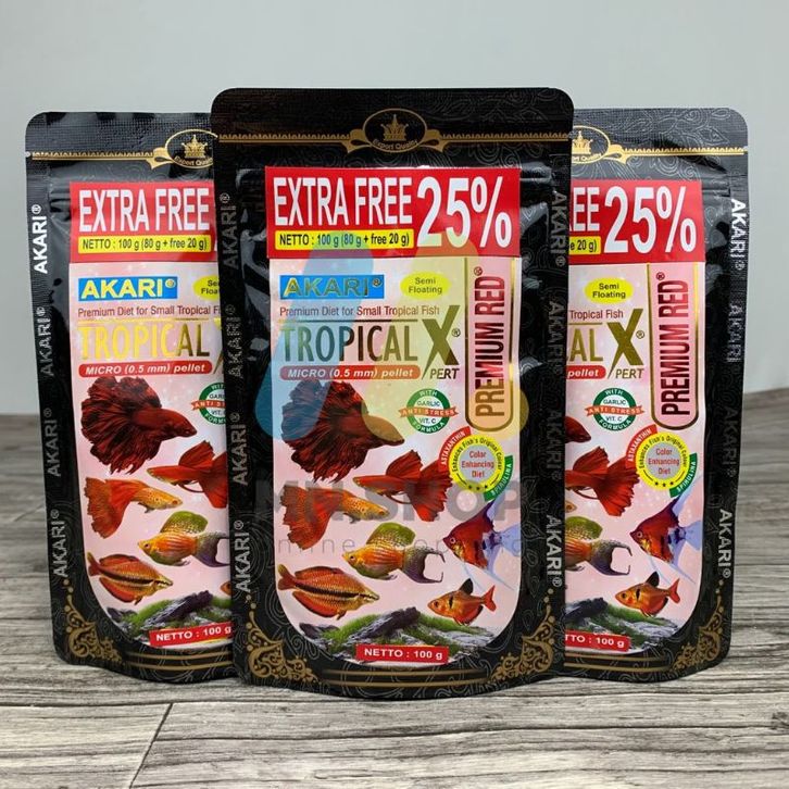 Akari Premium Red Tropical Xpert 100gr 0.5mm Semi-Floating Pelet Guppy Cupang Channa Tetra Tropical