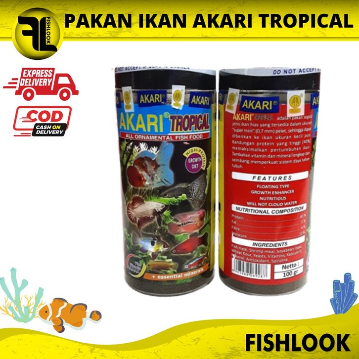 PELET MAKANAN PAKAN IKAN HIAS IKAN KECIL AKARI TROPICAL 100 gram