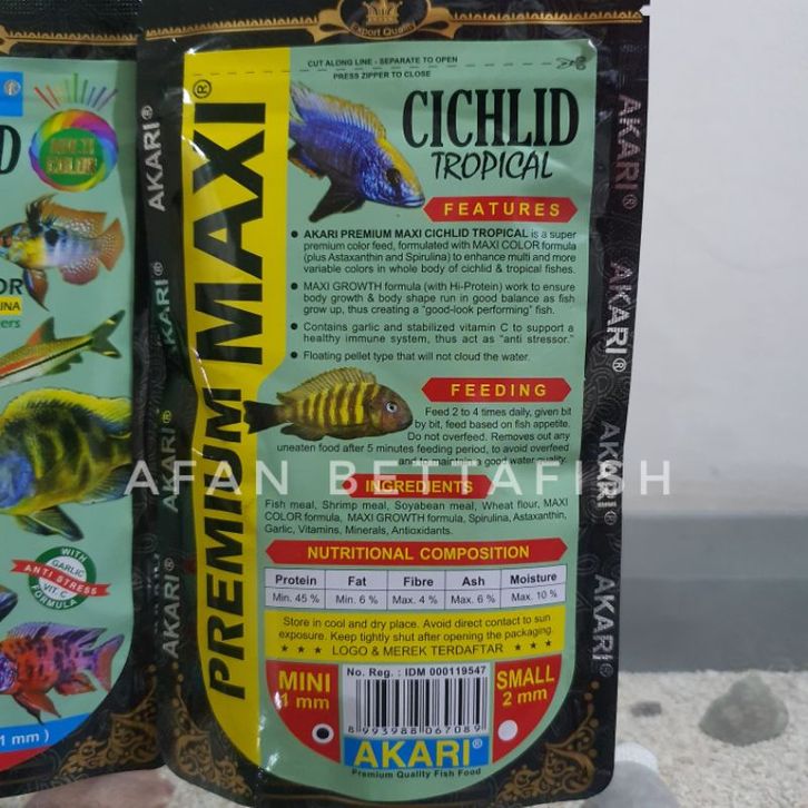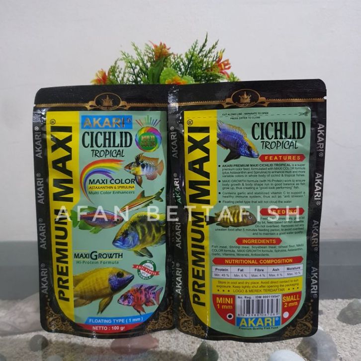 AKARI PREMIUM MAXI CICHLID TROPICAL 100GR 1MM / PAKAN PELET IKAN