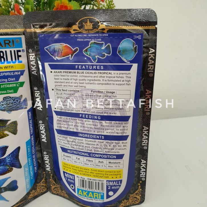 AKARI PREMIUM BLUE CICHLID 100GRAM 100GR TROPICAL FISH / Pakan Ikan