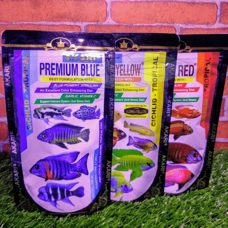Akari Premium red yellow blue CICHLID Chiclid Tropical 100 gr 100gr Pelet 1 mm pakan ikan