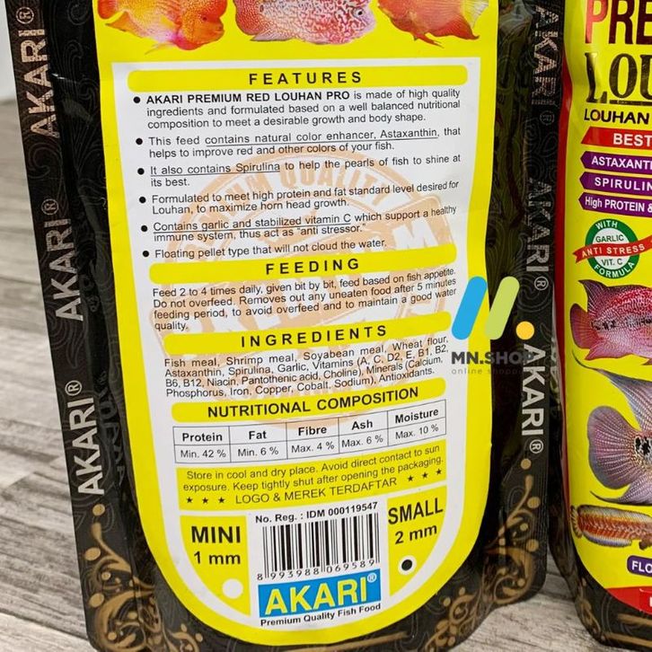pelet akari premium red louhan pro 250gram louhan-channa-predator
