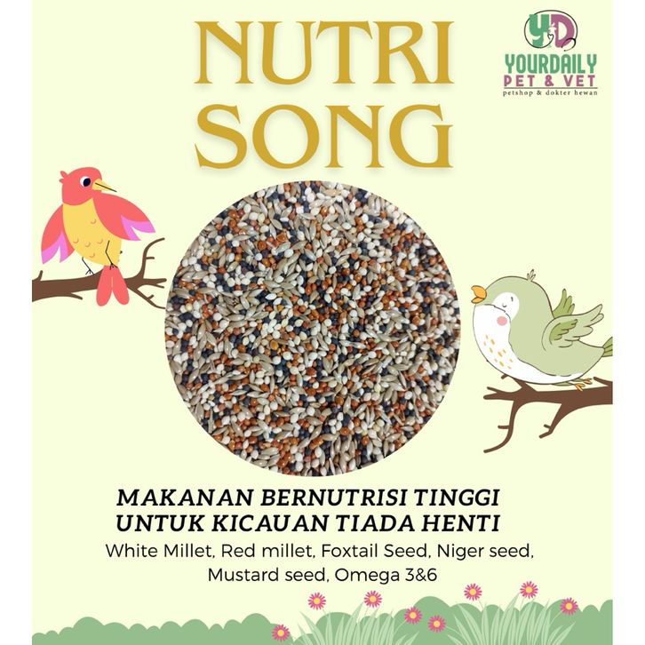 pakan burung NUTRISONG campuran super untuk burung kuter, perkutut, loverbird, dara, ayam, kicau