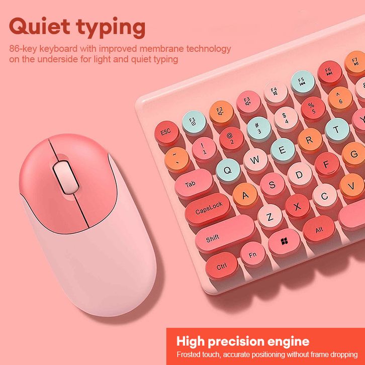 Colorful Wireless Keyboard Mouse Set Wireless Bluetooth Rechargeable Silent Click Gaming & Office 86
