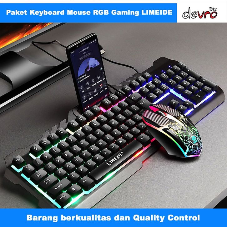 Paket Keyboard Mouse Gaming RGB dgn Holder Smartphone - Combo Keyboard Mouse Gaming RGB - LIMEIDE