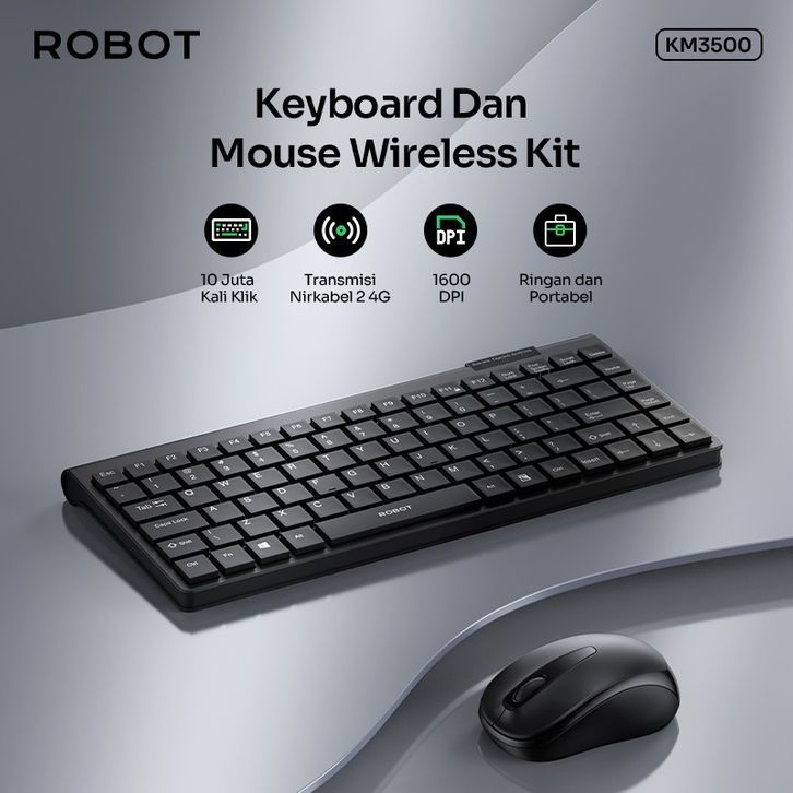Robot KM3 Keyboard Mouse Wireless Combo Set Ultra Thin Lht Desn