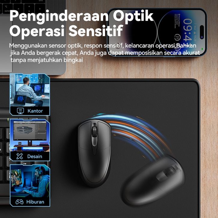 HOTBASIKE Mouse Wireless 2.4Ghz 1600DPI dengan Receiver USB untuk PC Laptop Tablet Silent Mini