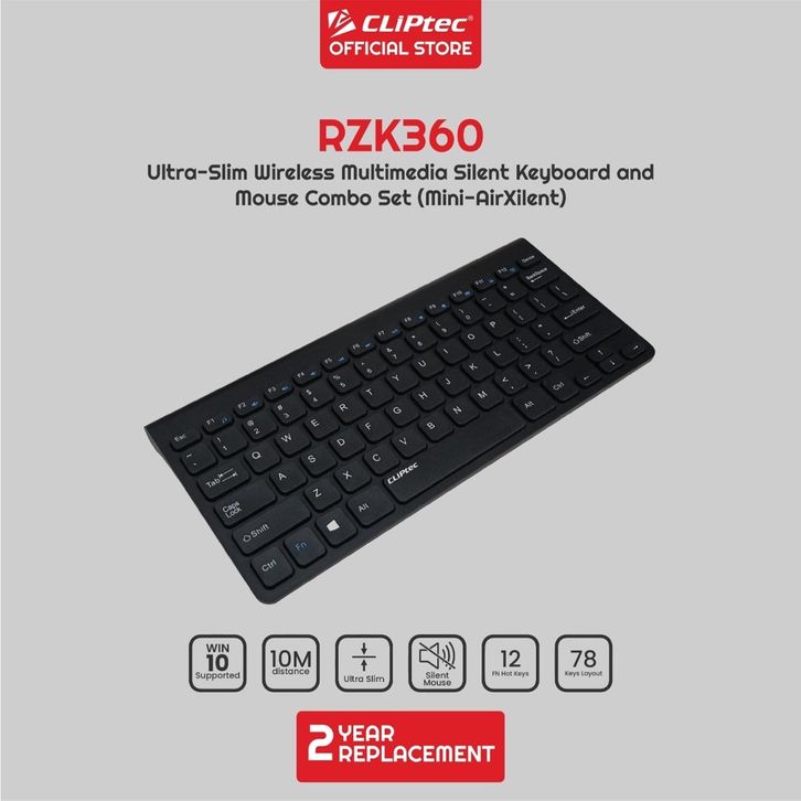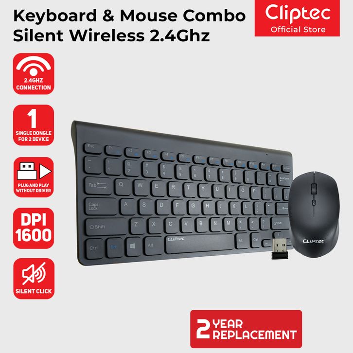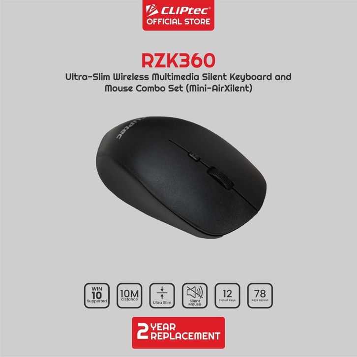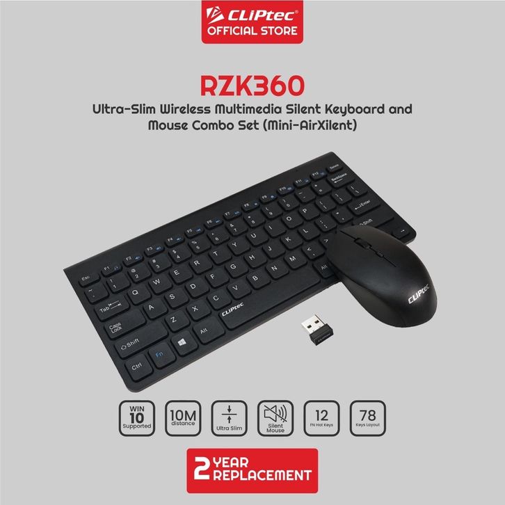 Keyboard Mouse Wireless Silent Combo Set Ultra Slim Multimedia CLIPtec RZK360