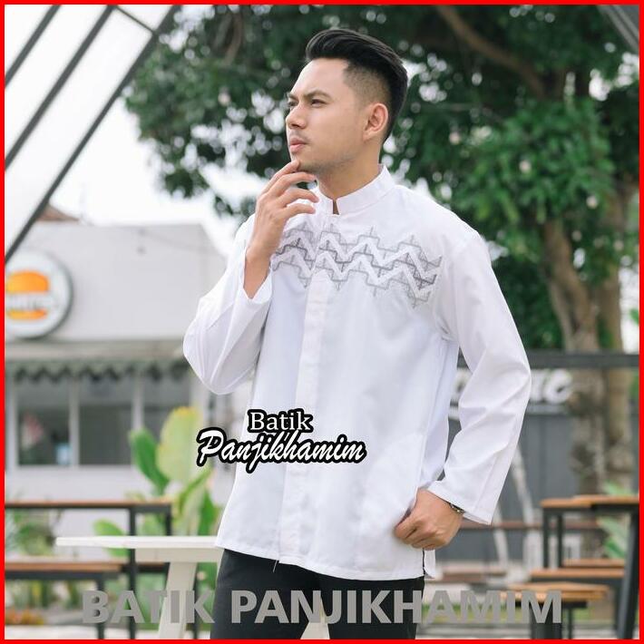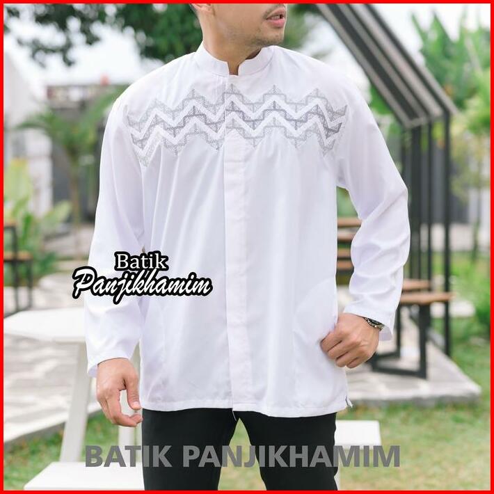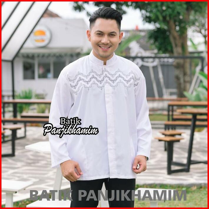 Kemeja Koko Bordir Pria Dewasa Lengan Panjang Warna Putih Bahan Katun Adem Busana Muslim Jumbo Xxl