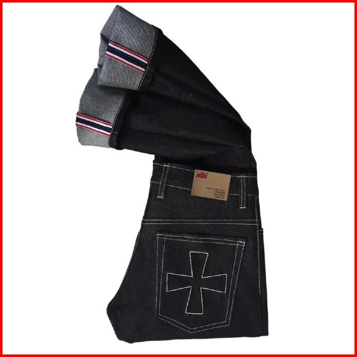 Celana Selvedge Blaack 14 Oz Nos Id Denim Panjang Pria Nyaman Hitam