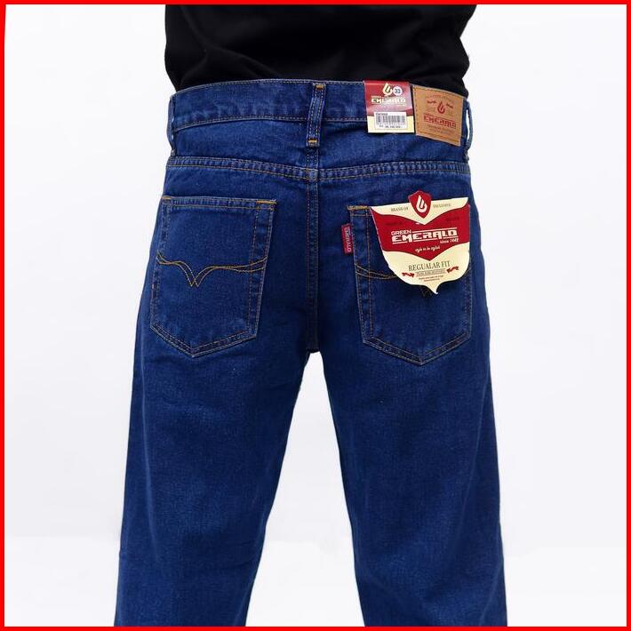 Celana Jeans Panjang Pria Standar Reguler Green Emerald 23-38 Denim Basic Nyaman Biru Hitam Navy Fit Stretch Slim