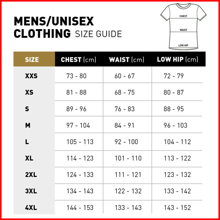 XS, S, M, L, XL, XXL
