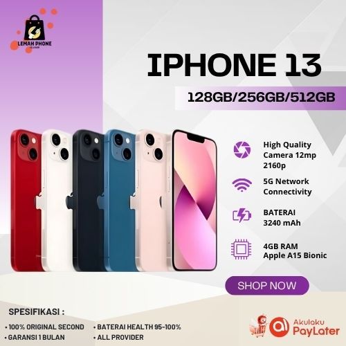 IPHONE 13 SECOND INTER MULUS NO MINUS BH 98% 128GB/256GB TERMURAH