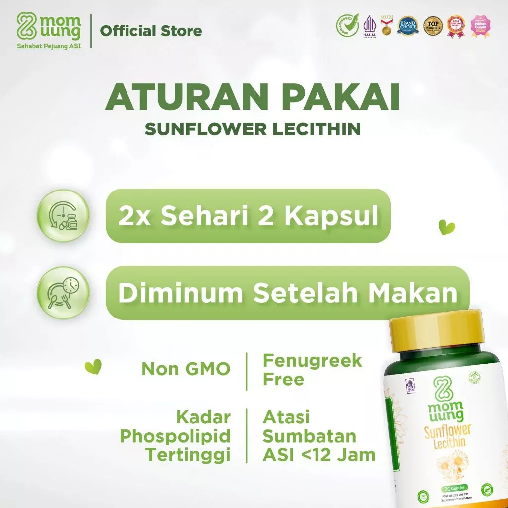Mom Uung Sunflower Lecithin 30 Kapsul Melancarkan Sumbatan ASI - Non GMO - BPOM Halal