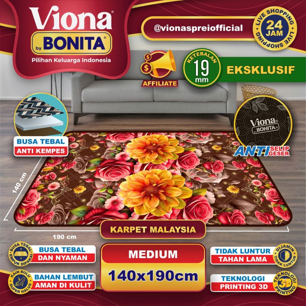VIONA BONITA 140x190 Karpet Busa Malaysia 19mm eksklusif Motif bunga - Karpet Lembut & Anti Licin (AF)