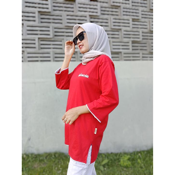 BAJU SPESIAL HUT RI ATASAN MERAH PUTIH LIST BLOUSE LENGAN PANJANG KEMERDEKAAN BAJU KAOS AGUSTUSAN MERAH PUTIH 17 AGUSTUS