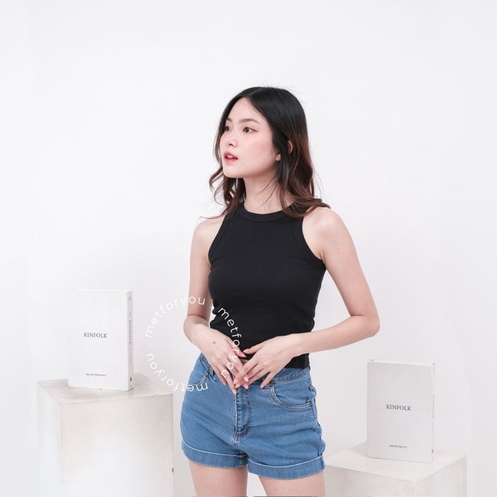 METFORYOU Halter Rib Tanktop Wanita Korea Tank Top
